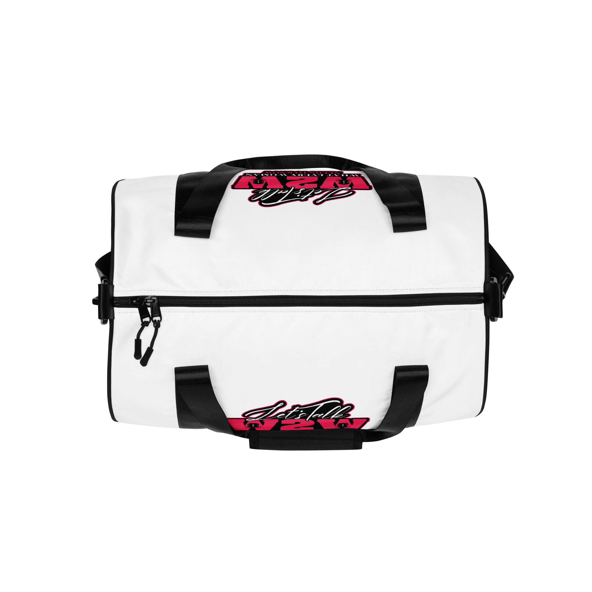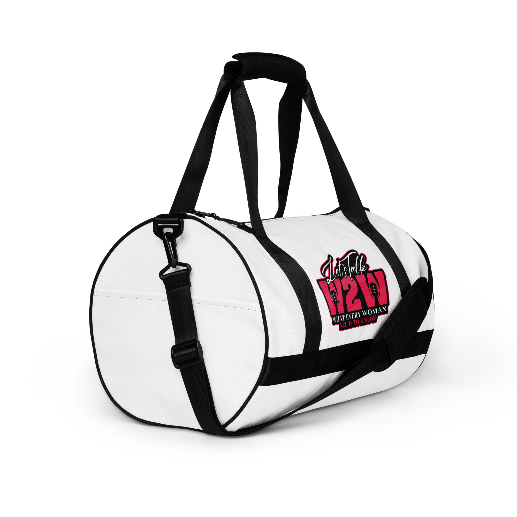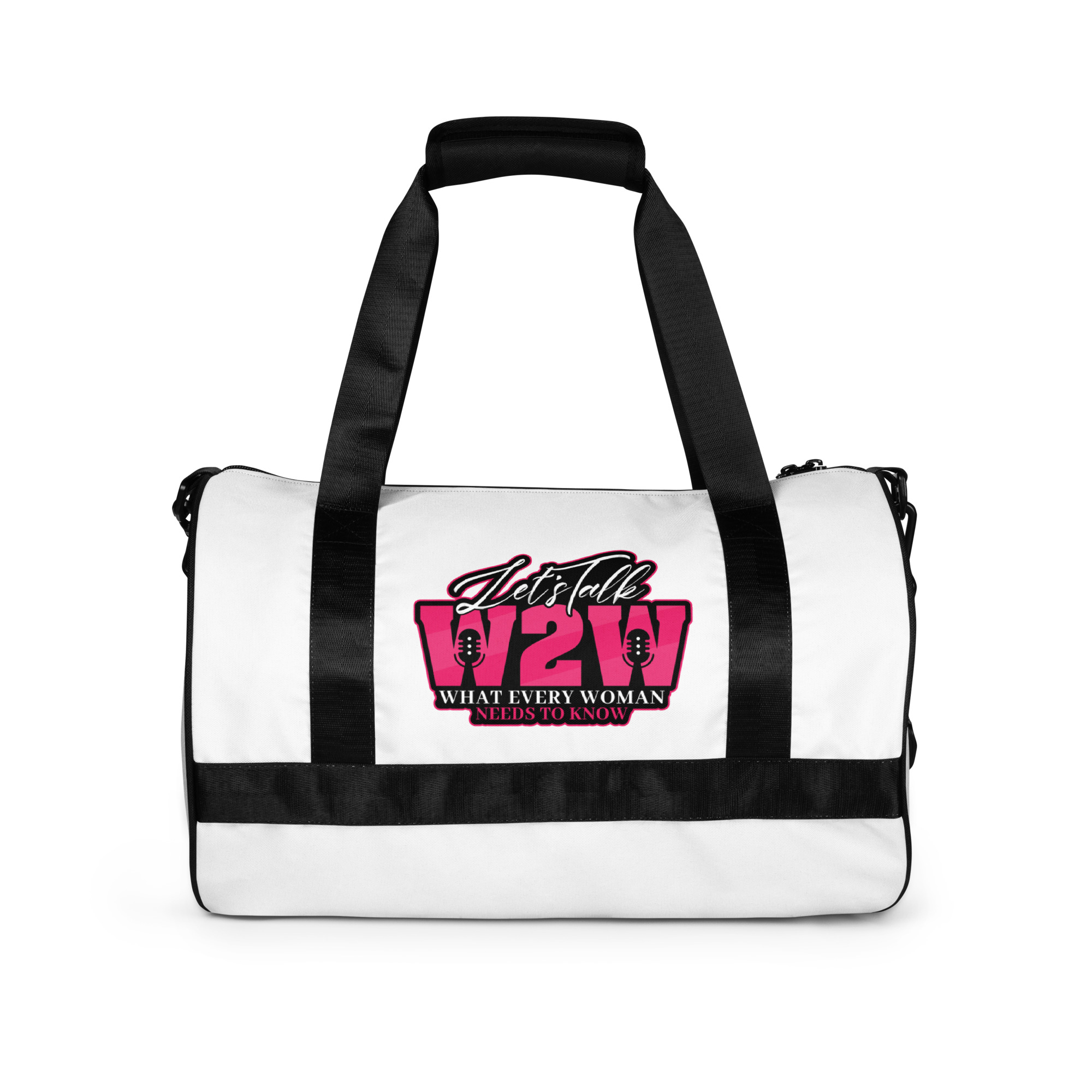 Ready to get your fitness on? Add some punch to pumping iron with this all-over print gym bag. Made from 100% polyester and sturdy, water-resistant fabric, this bag is fun meets function. And it’s got pockets!